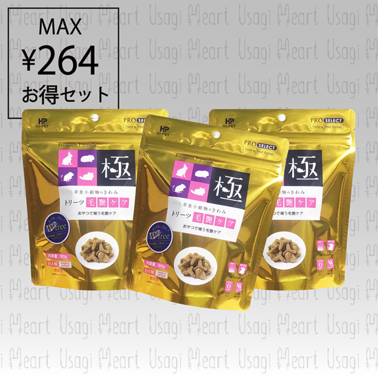 でん粉類・小麦粉を使わずにダブルフリーで成形した草食小動物用おやつ